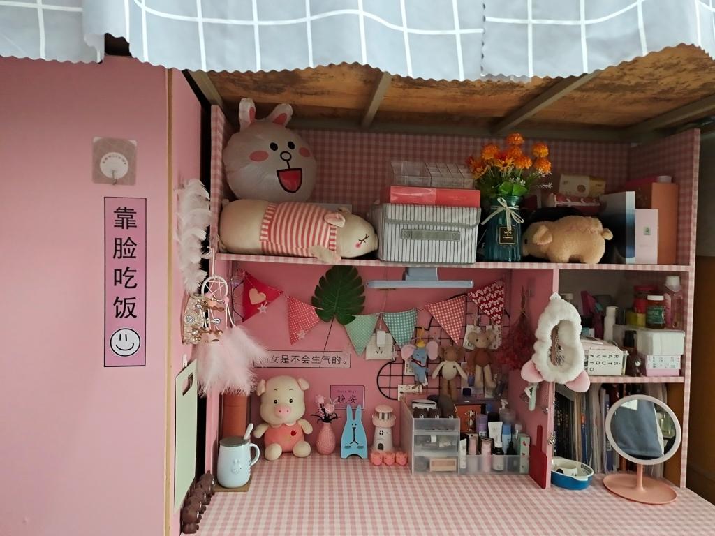 本次活动由线上报名开始和线下展示两部分组成。活动内容包括个人解说、宿舍装扮介绍以及宿舍成员个性征集。参与此次活动的学生都兴致满满,积极用心地装饰自己的宿舍——有的使用壁纸把书桌装饰出不同的风格,有的在墙上粘上自己喜欢的电影或明星的海报,还有的买了绿植,宿舍呈现出一片生机勃勃的景象。主题各不相同,却彰显了各宿舍的个性。