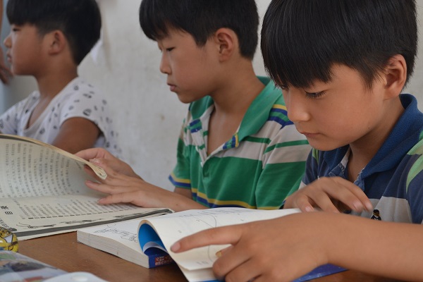 (孩子们在专注的读书)