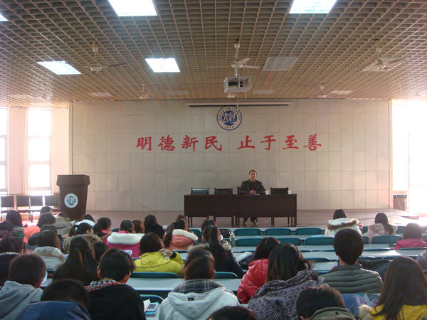 教师徐浩应邀为该年级化学专业及实验班共一百余人进行讲解,2011级辅导员王路娟与会。