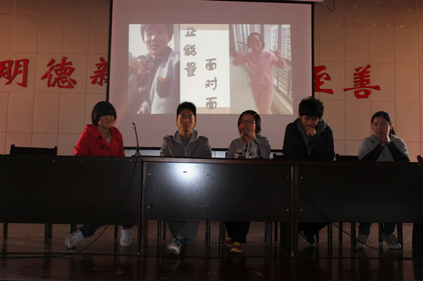 会议伊始,伴随着正能量幻灯片的播放,同学们回顾了大学以来的点点滴滴。随后,马洁讲话。她全面深入分析了大一同学不同阶段的不同心理,以相关事例进行剖析,并结合自身经历提出了三点建议:一、要自信自己,勇敢向前,善于发现自己的闪光点;二、及时倾诉,突破自我思维困境,多做总结;三、寻找突破口,冲出迷茫的误区,明确目标,坚持梦想。