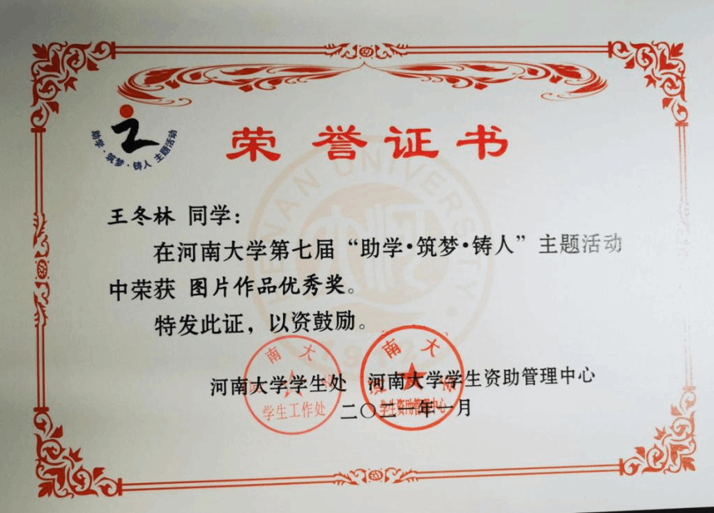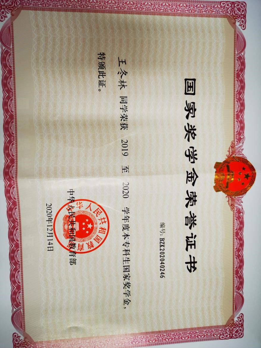 他曾获得国家奖学金、国家励志奖学金、获得麻豆影视