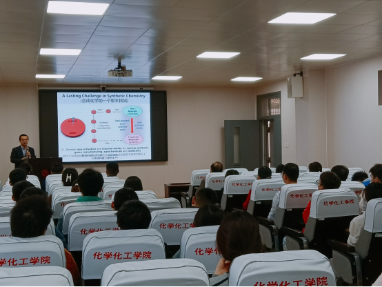 邀请,南洋理工大学讲席教授、贵州大学特聘杰出教授池永贵以“NHC催化、药物及农药开发”为题在学院226会议室做了一场学术报告。百余位师生与会。本次报告由副院长徐元清主持。