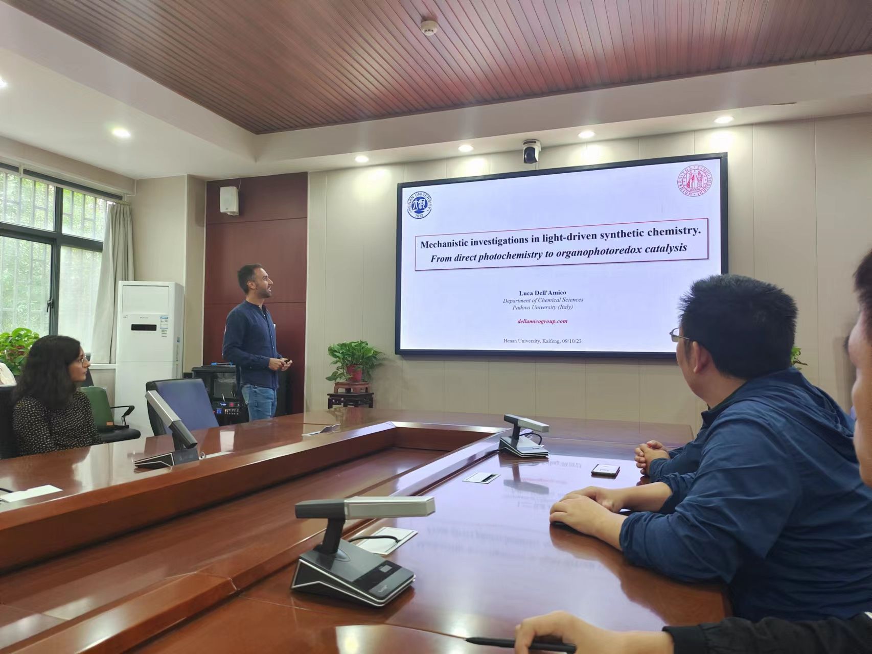 邀请,意大利Padova大学Luca Dell’Amico教授在学院220会议室进行了一场题为“Mechanistic investigations in light-driven synthetic chemistry. From direct photochemistry to organophotoredox catalysis”的学术报告。本次报告由副院长徐元清主持。