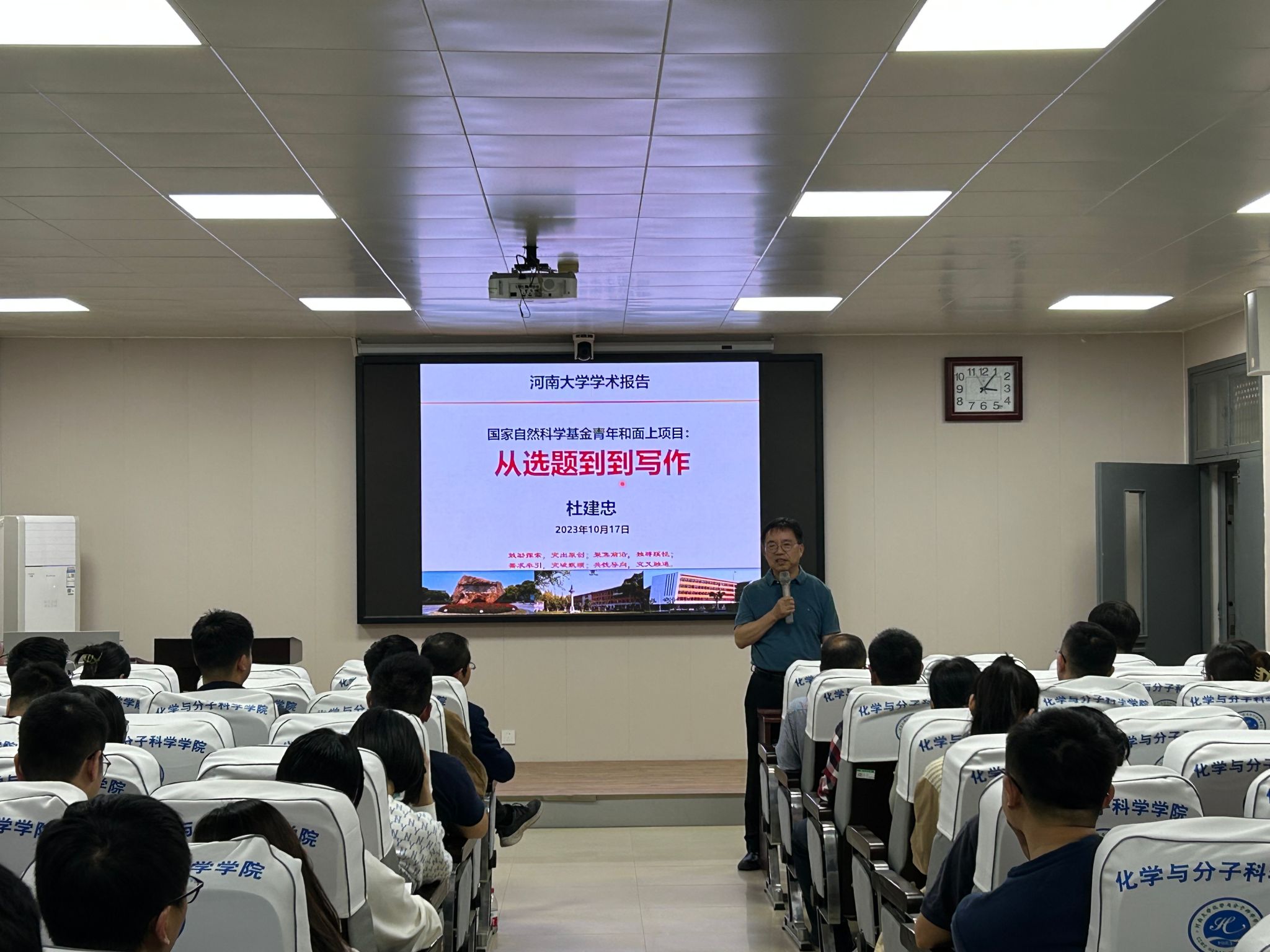 报告中,杜建忠从国家自然科学基金的宗旨和特点出发,主要讲述了国家自然科学基金青年项目、面上项目的选题、写作要点,他围绕国家自然科学基金的特点、基金评阅流程、撰写要点建议、常见问题剖析等关键点进行了详细阐述。此外,他还介绍了杰青、优青、重点项目等的申报与评审问题。报告结束后,他与参会老师进行了深入交流,并全面解答了老师们在申请国家自然科学基金过程中遇到的问题。