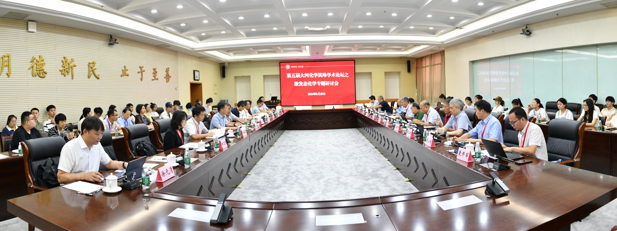 主办的“第五届大河化学筑峰学术论坛之激发态化学专题研讨会”顺利举行。来自吉林大学、北京理工大学、南京大学、中国科学院、北京大学、汕头大学、陕西师范大学、中国科学技术大学、复旦大学、国家纳米科学中心等单位化学及相关领域的20名知名专家学者,以及学院的60余名师生参加了论坛。开幕式由国家杰出青年基金获得者、院长陈永明教授主持。