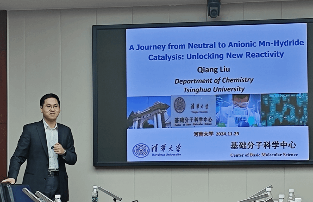邀请,清华大学刘强副教授在学院220会议室进行了一场题为“A Journey from Neutral to Anionic Mn-Hydride Catalysis: Unlocking New Reactivity”的学术报告。本次报告由执行院长徐元清主持。