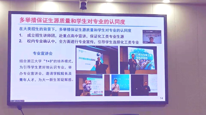 邀请浙江大学化学工程与生物工程学院副院长潘鹏举教授作《化工类专业人才培养的实践与探索》的线上报告。学院化工系、应用化学系30余位教师参加了报告会,报告会由张磊副院长主持。