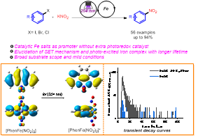 卤代烃的原位硝化反应在医药、农药、有机染料、炸药和功能材料领域有着非常广泛的应用。目前对于该反应的研究,以高温条件下铜/钯的Ullmann偶联反应为主,反应机理为经典的氧化插入、还原消除双电子转移机理。铁元素作为地球储量最为丰富的元素之一且大多数铁盐是无毒的,作为光氧化还原催化剂具有较好的发展前景。但铁配合物激发态寿命较短是遏制该类光敏催化剂发展的最主要原因。此外,铁价态较多且其中间价态中间体稳定性较差也给该类催化剂的应用和机理研究带来了困难。该工作首次实现了光诱导铁催化的原位硝化反应,并通过具体的理论计算、光化学和电化学控制实验对反应机理进行了深入的探讨,提出了新颖的光诱导铁催化下的单电子转移机理。同时还实现了三个药物分子的优化合成,验证了该反应的实用性。麻豆影视