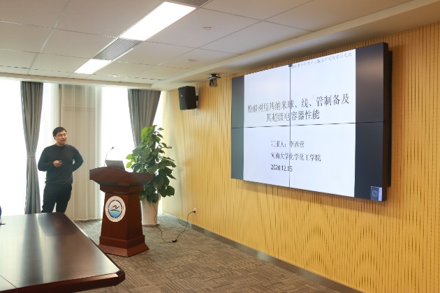 上午的活动由郑州分所副所长张延强主持。河南省多酸化学重点实验室副主任、化学化工学院赵俊伟教授,化学化工学院种瑞峰副教授,中科院过程所张海涛研究员、陈仕谋研究员、蔡迎军副研究员,依次汇报了各自在锌离子电池、锌空电池、固态锂电池、锂浆料和光电催化水氧化上的研究成果。下午的活动由化学化工学院副院长徐元清主持。化学化工学院邢瑞敏副教授、李西营副教授、庞杰博士,过程所郑州分所刘艳侠副研究员、赵冲冲博士,分别汇报了各自在锂硫电池、超级电容器、硫化物电催化、纳米碳材料电化学储能等方面的研究成果。每个报告结束后,参会人员积极发言,就领域内的关键共性问题展开了深入的讨论,整场气氛热烈。