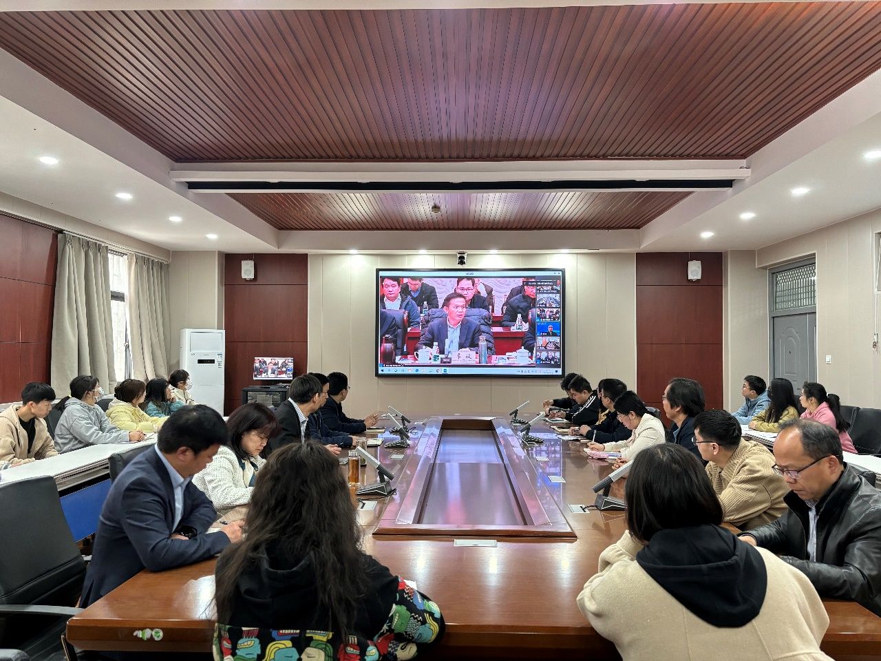 会上,张锁江表示,今年的全国两会是在以中国式现代化全面推进强国建设、民族复兴伟业关键时期召开的一次重要会议,是一次高举旗帜、真抓实干、团结奋进的大会。大会精神主要体现在习近平总书记重要讲话以及审议通过的议案和报告中,概括起来有三个特点,即突出“一条主线”、聚焦“三个重点”、侧重“四个增强”。他结合参会经历,从新质生产力的深刻内涵、“看准了就抓紧干”的重要作风、“发展是实现人民幸福关键”的重要理念、深入实施科教兴国战略、全面推进依法治国等方面,传达了习近平总书记在两会期间的系列重要讲话精神、政府工作报告、“两高”报告等主要内容。