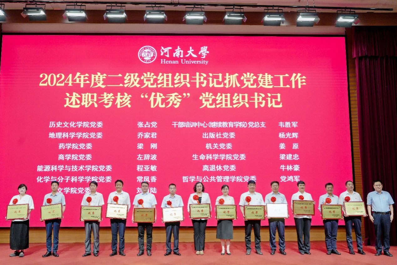 本次表彰获得多项荣誉,既是校党委、校行政对学院党委工作的肯定,更是对学院各项工作的鞭策。学院党委将以习近平新时代中国特色社会主义思想为指导,深入学习习近平总书记在河南考察时的重要讲话精神,学习贯彻省部领导同志调研我校时的讲话精神和2025年工作会会议精神,聚焦“两高四着力”,对照学校“提质进位年”建设目标,弘扬“自信、拼搏、开放、创新”的新河大精神,保持“稳、进、快”良好发展态势,统筹推进教育科技人才一体化创新发展,着重打造高水平教学科研人才团队,建立稳定高效的管理服务队伍,培育勤奋、细致、恒久的工作作风,以高质量党建引领学院高效能治理,以新认知引领新行动,以新作为催生新成效,为加快实现创建化学一流学科目标奉献力量!