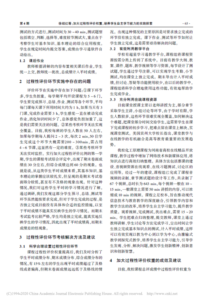 加大过程性评价权重培养学生自主学习能力的实践