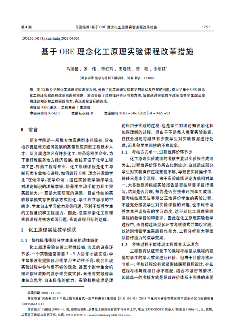 基于OBE 理念化工原理实验课程改革措施