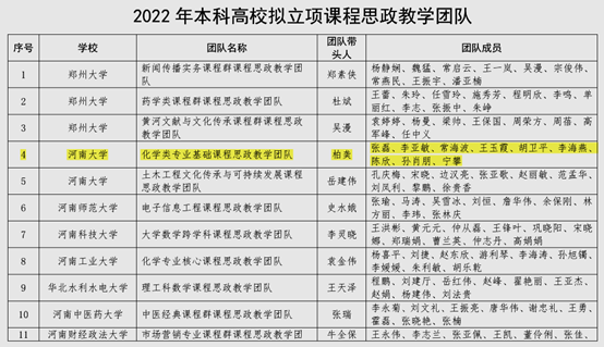学院获批河南省化学类专业基础课程思政教学团队