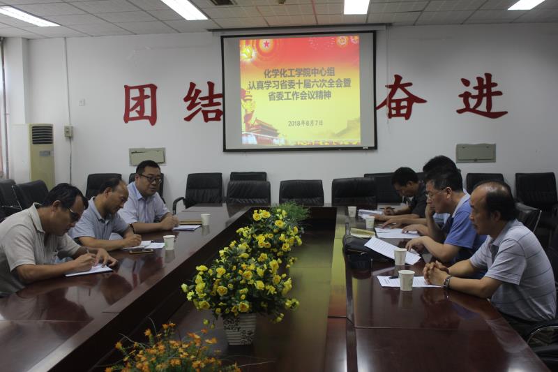 8月7日下午,化学化工学院在学院220会议室,召开党委中心组学习会议,专题学习中共河南省委十届六次全会暨省委工作会议精神。在家的学院中心组成员参加会议,会议由化学化工学院党委书记乔梁主持。