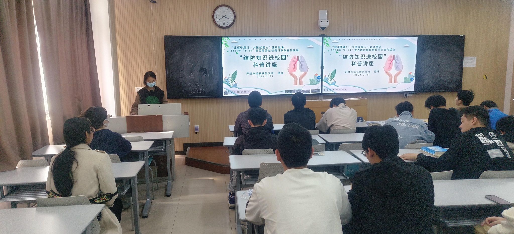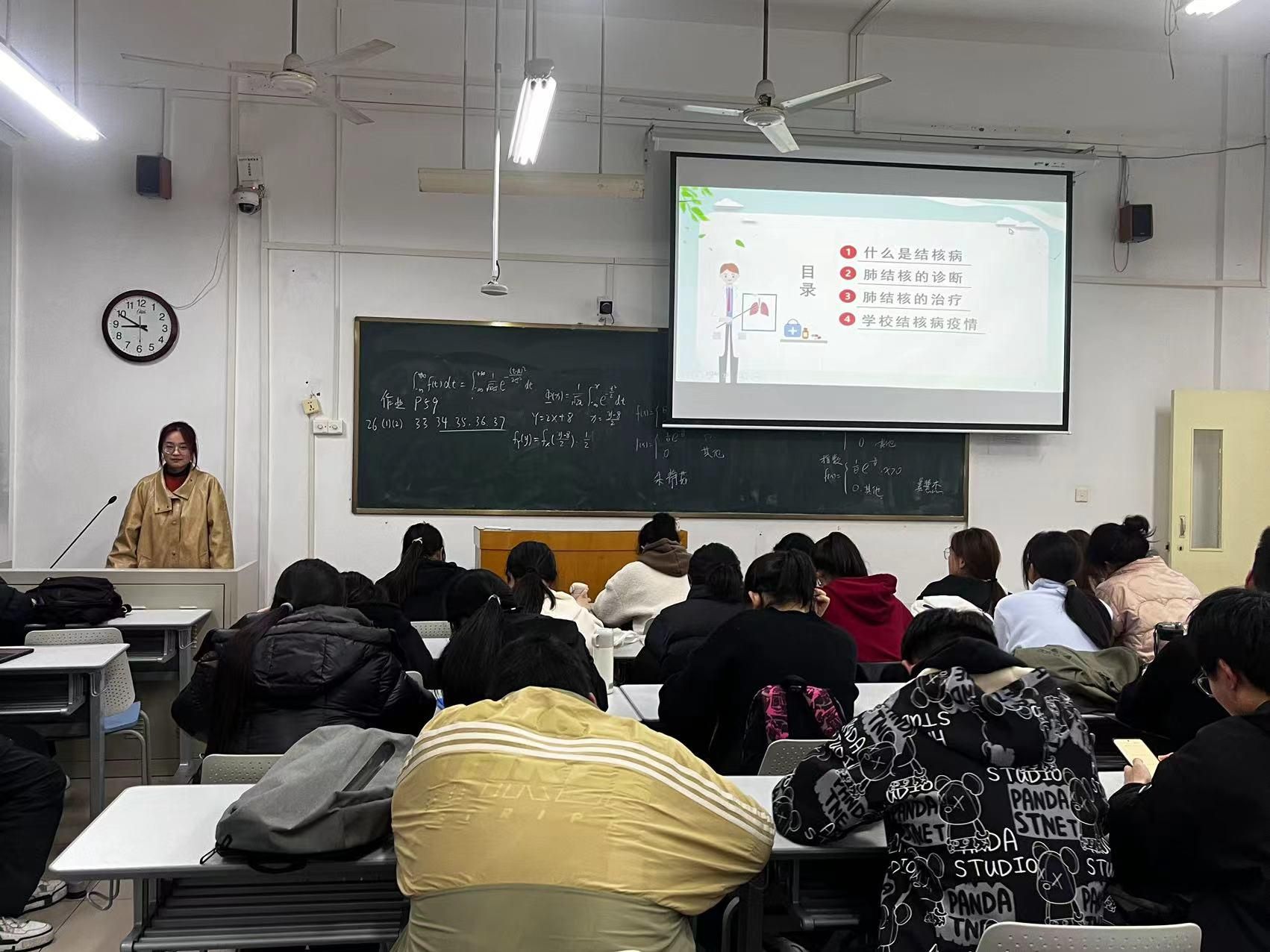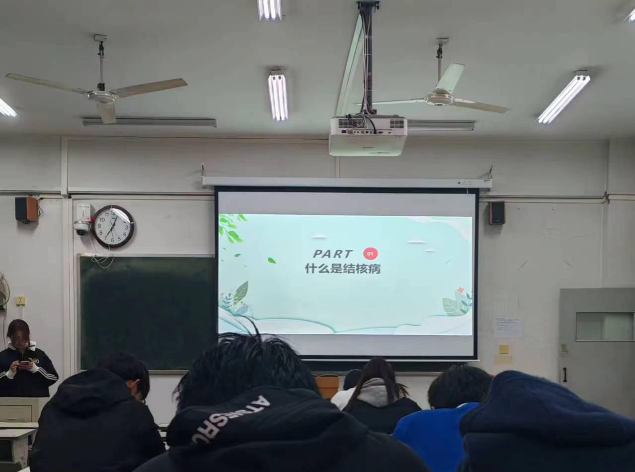 积极组织学生参加学校《肺结核防治知识师资培训》,随后回学院以“你我共同努力 终结结核流行”为主题,开展结核病防治知识宣传教育。